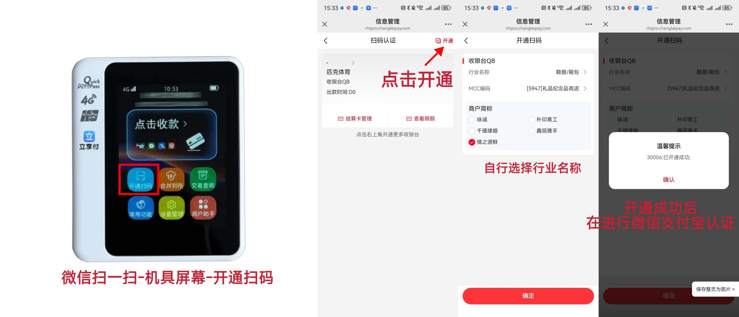 3、鲲鹏扫码停用,先使用刷卡,可按下图提示重新开通扫码
